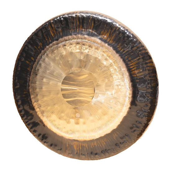 Der Klang ist tief, weit und kraftvoll, mit lang anhaltenden Schwingungen. Bei stärkerem Anschlag beginnt der Gong intensiv zu vibrieren und entfaltet ein dichtes Klangfeld, das den ganzen Raum durchdringt und zu tiefer Entspannung und innerer Weite einlädt.