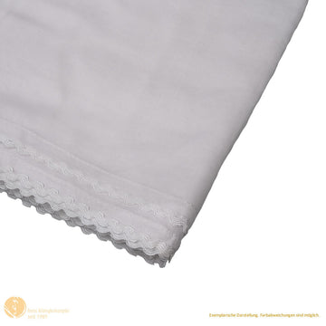Das großzügige Tuch aus feiner Baumwolle wirkt leicht und anschmiegsam und vermittelt ein Gefühl von sanfter Umhüllung. Eine dekorative Zierbordüre verleiht ihm eine besondere Ästhetik.